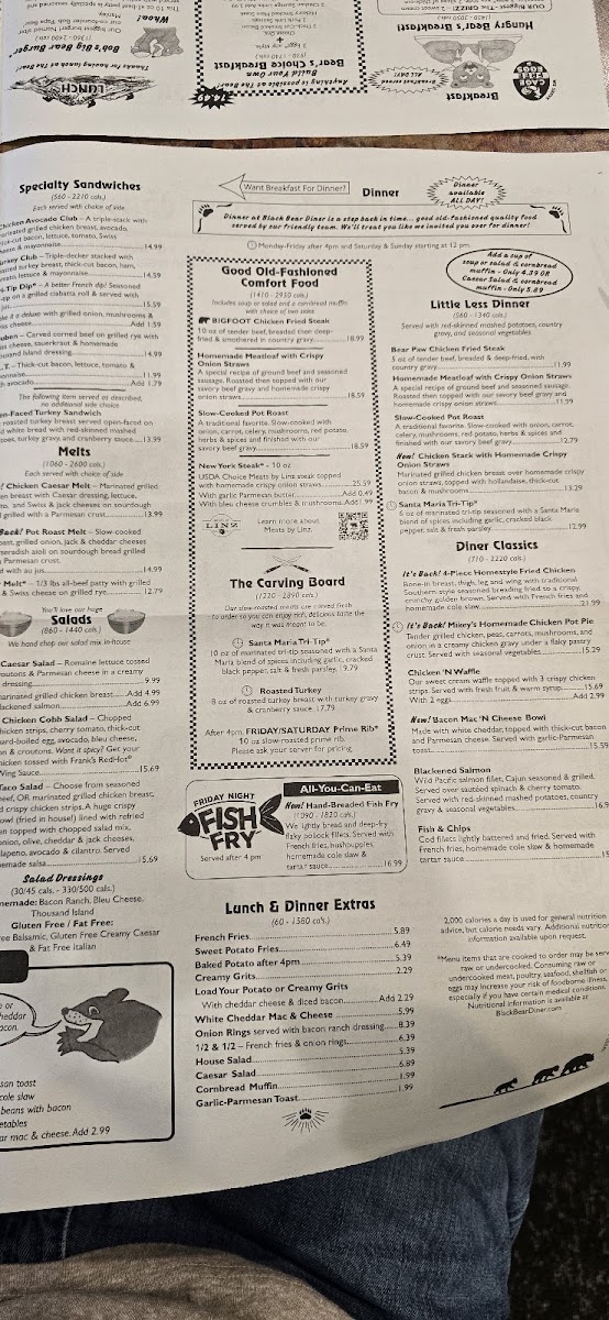 4 Bear Paw Chicken Fried Steaks with country gravy, served with your choice of 2 dinner sides.